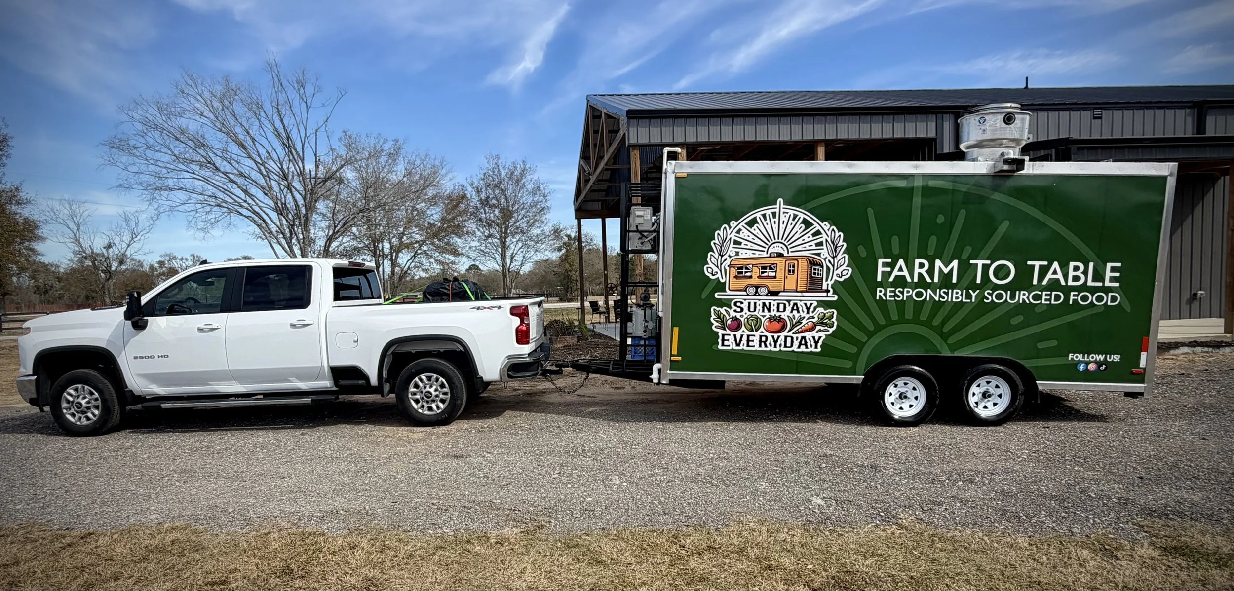 Sunday Everyday operates a fully self-contained mobile catering rig designed specifically for film productions, commercial shoots, and high-volume corporate environments across Texas.